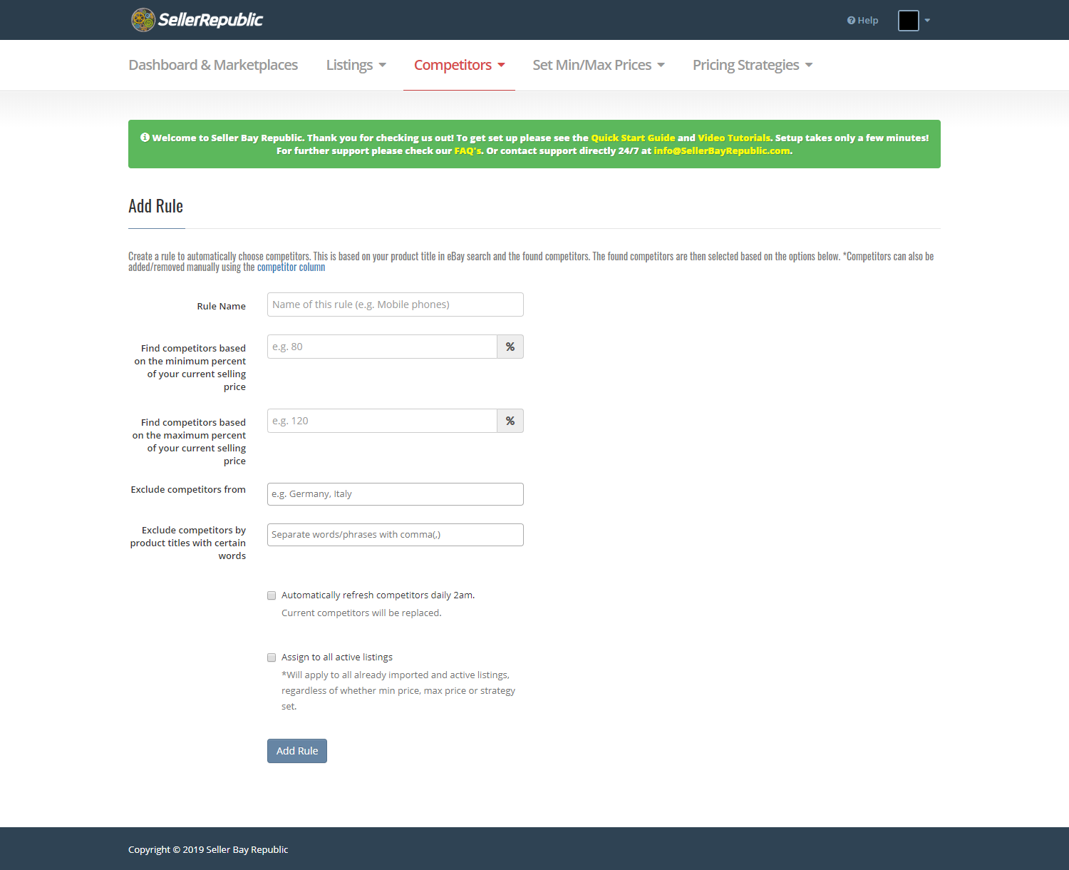 To bulk set an Assign a Competitor Rule to Multiple Listings. Firstly make sure you have added a strategy following the instructions above and then follow this link.